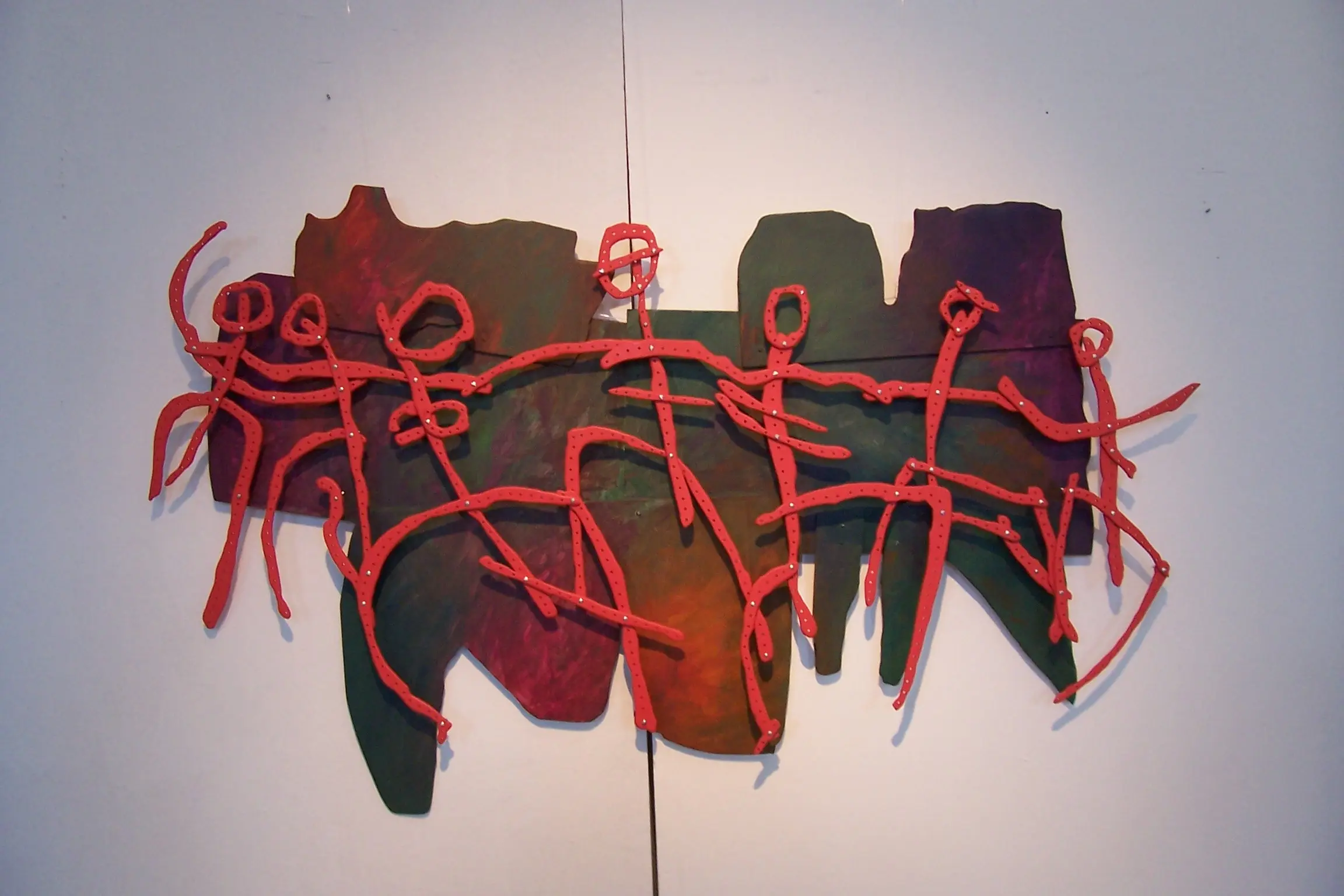 Relieve de MDF tallado y pintado, tornillos.