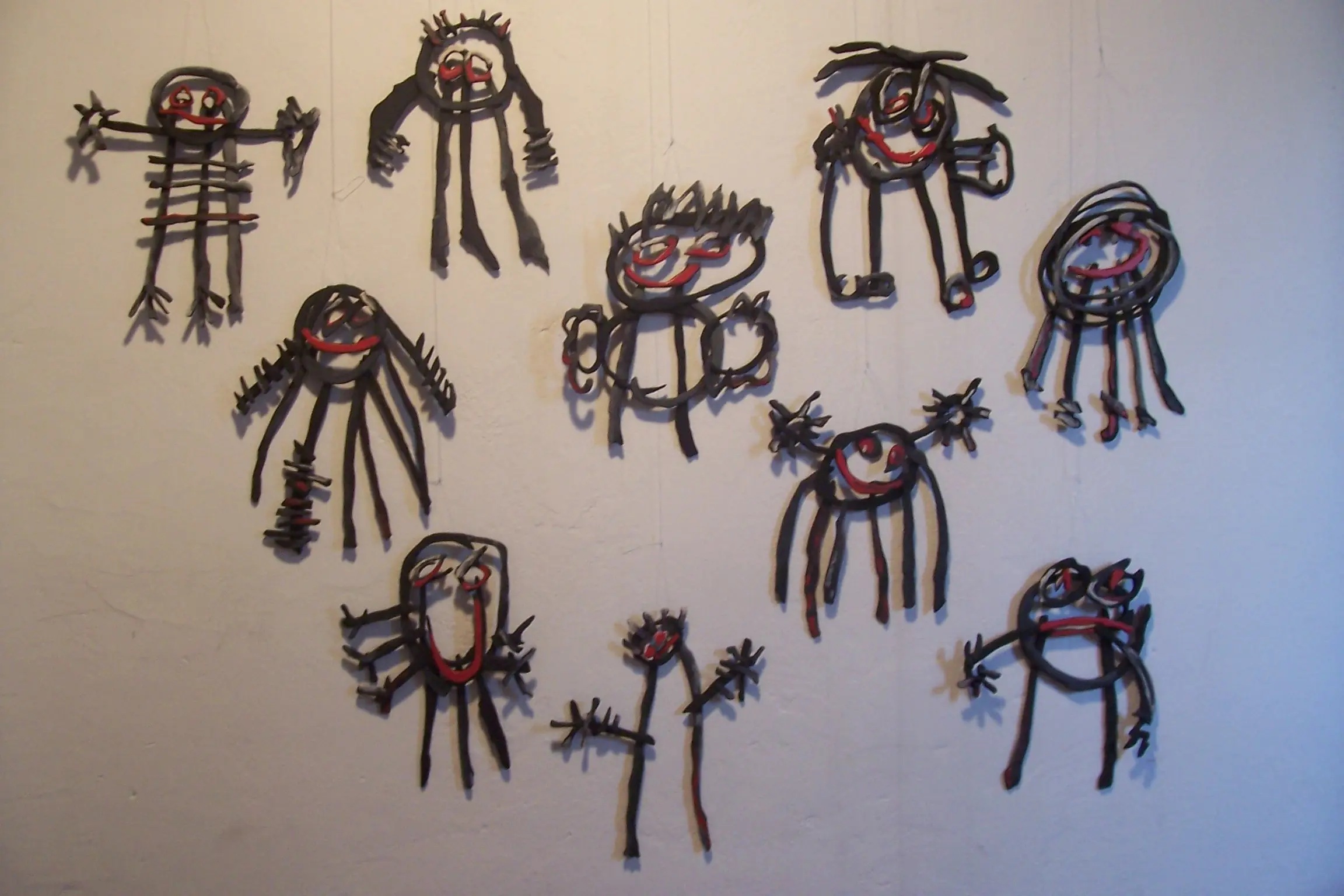 Diez relieves de madera pintado con acrílico, diez cajas de madera para contenerlos individualmente y diez carpetas de autoría compartida