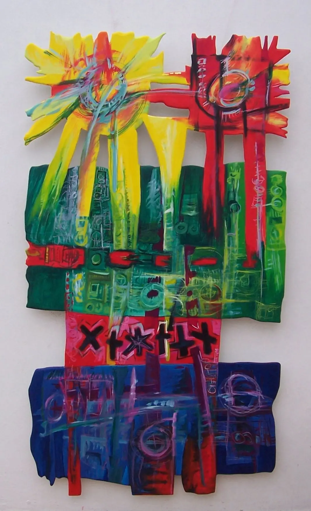 Pintura al acrílico sobre MDF con cortes y tallados.