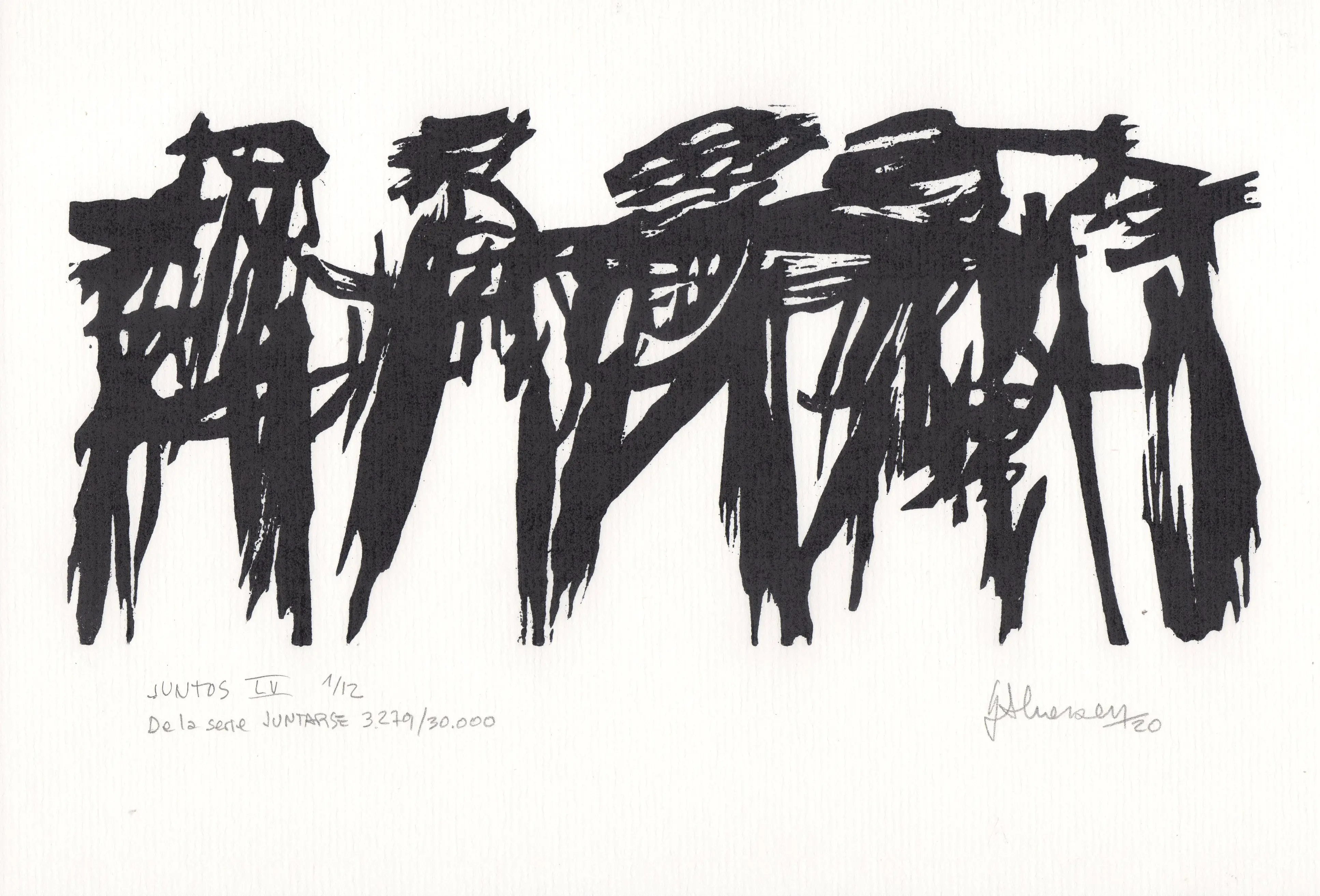 Una de las 59 xilografías que fueron grabadas, casi en su totalidad en el año 2010, pero que su estampación tradicional definitiva se realizó entre los años 2015 a 2020. Desde los inicios se realizaron copias sobre soportes diferentes, para ser utilizadas en la serie de trabajos que integran el proyecto Caciques, el que se halla comprendido en el proyecto abarcativo JUNTARSE 30.000. Todos los tacos son de 10 x 22 cm. y la edición tradicional de 12 ejemplares, se realizó sobre papel de 17 x 25 cm.