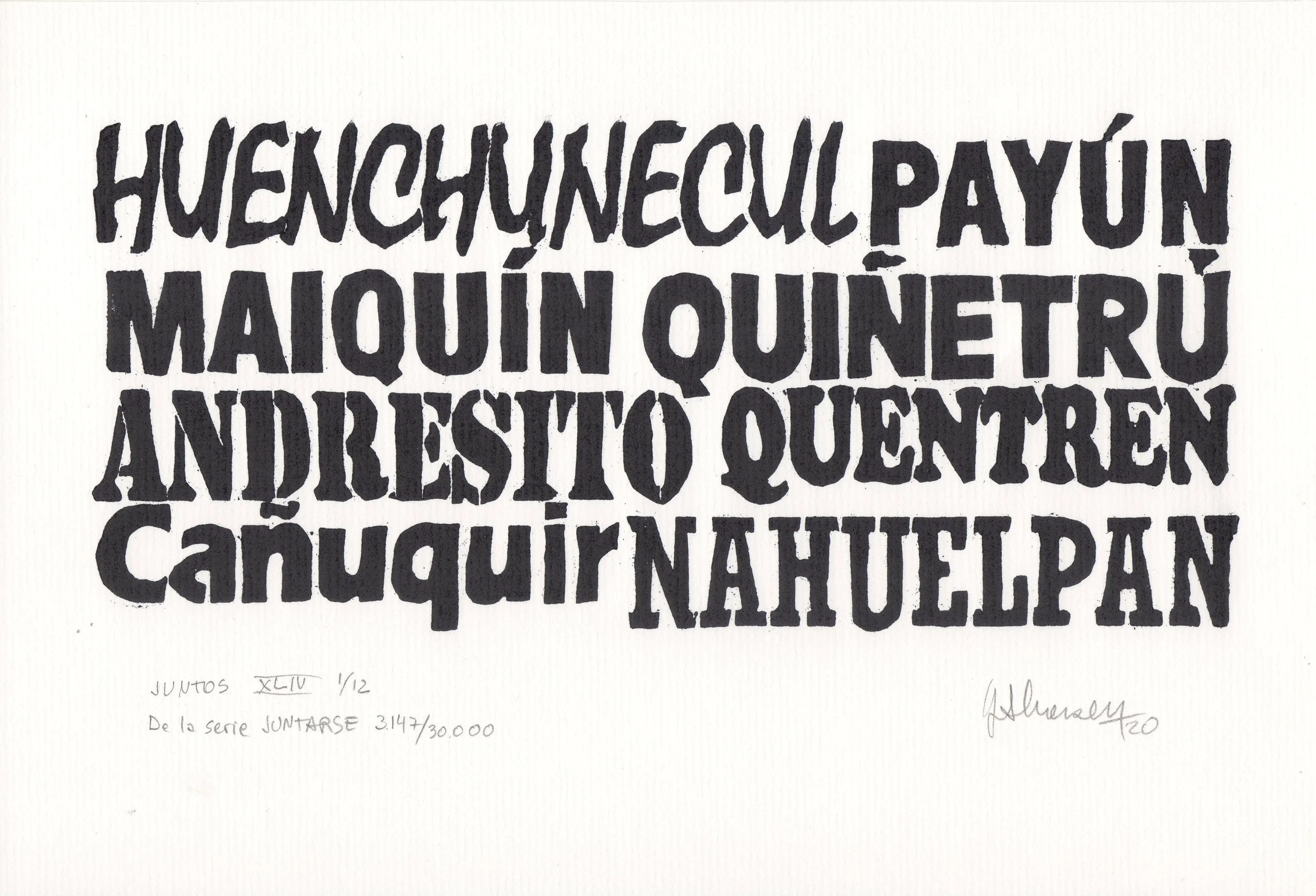 Una de las 59 xilografías que fueron grabadas, casi en su totalidad en el año 2010, pero que su estampación tradicional definitiva se realizó entre los años 2015 a 2020. Desde los inicios se realizaron copias sobre soportes diferentes, para ser utilizadas en la serie de trabajos que integran el proyecto Caciques, el que se halla comprendido en el proyecto abarcativo JUNTARSE 30.000. Todos los tacos son de 10 x 22 cm. y la edición tradicional de 12 ejemplares, se realizó sobre papel de 17 x 25 cm.