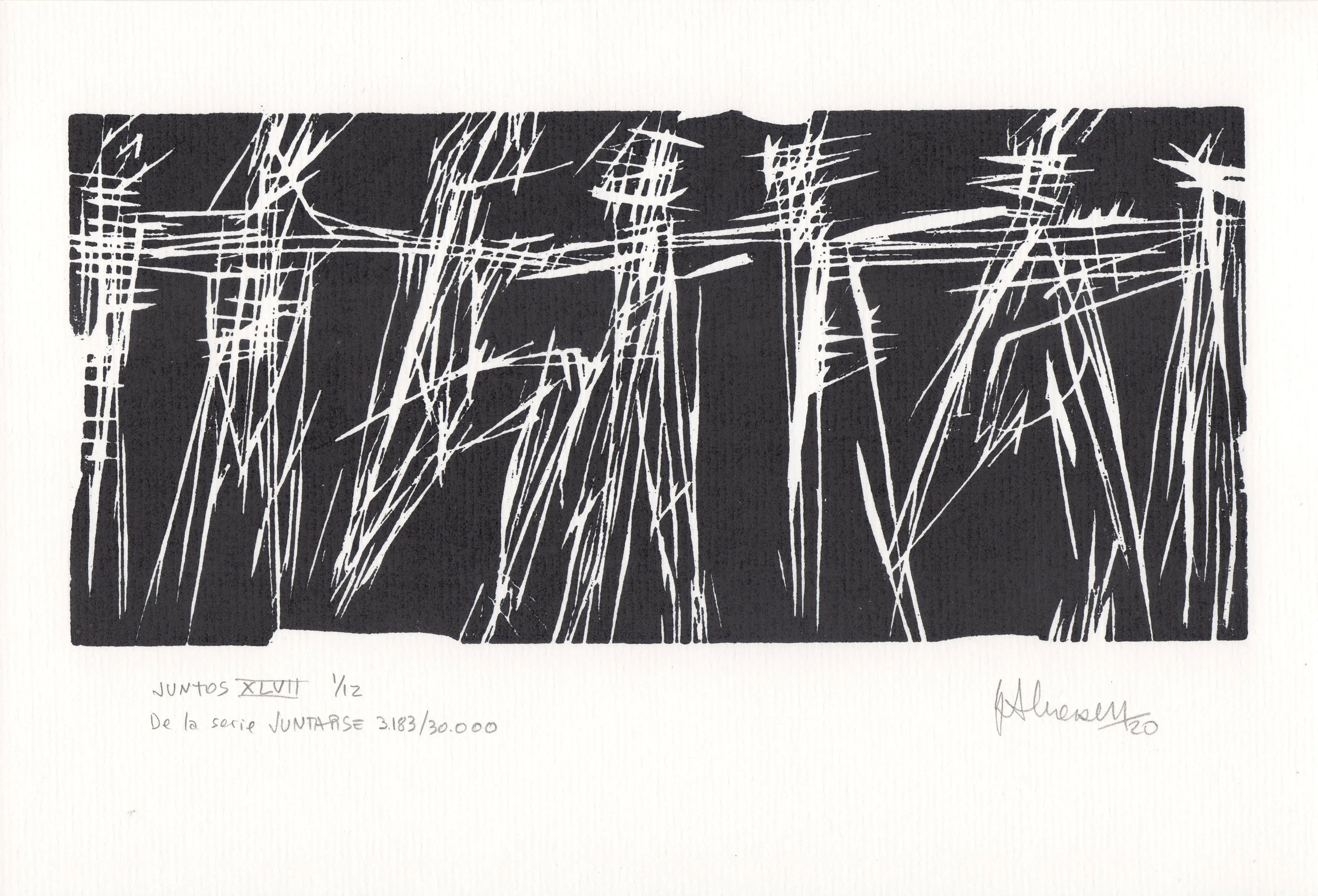 Una de las 59 xilografías que fueron grabadas, casi en su totalidad en el año 2010, pero que su estampación tradicional definitiva se realizó entre los años 2015 a 2020. Desde los inicios se realizaron copias sobre soportes diferentes, para ser utilizadas en la serie de trabajos que integran el proyecto Caciques, el que se halla comprendido en el proyecto abarcativo JUNTARSE 30.000. Todos los tacos son de 10 x 22 cm. y la edición tradicional de 12 ejemplares, se realizó sobre papel de 17 x 25 cm.