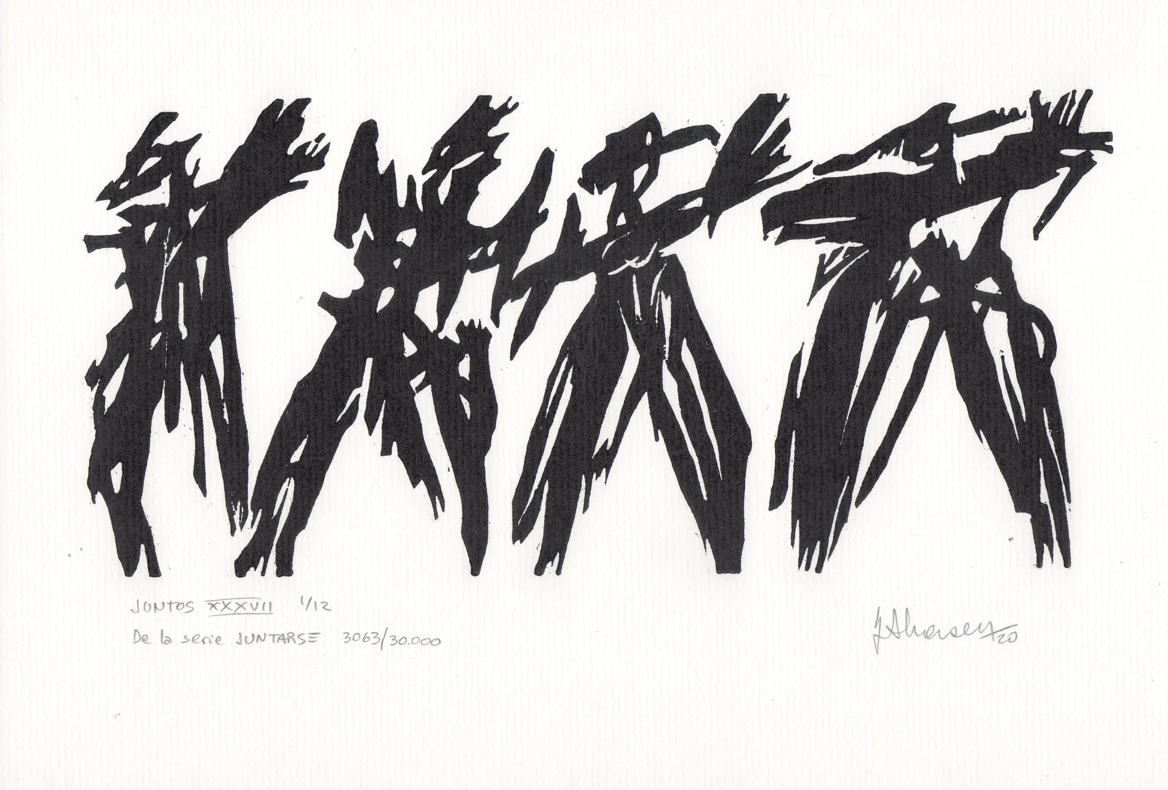 Una de las 59 xilografías que fueron grabadas, casi en su totalidad en el año 2010, pero que su estampación tradicional definitiva se realizó entre los años 2015 a 2020. Desde los inicios se realizaron copias sobre soportes diferentes, para ser utilizadas en la serie de trabajos que integran el proyecto Caciques, el que se halla comprendido en el proyecto abarcativo JUNTARSE 30.000. Todos los tacos son de 10 x 22 cm. y la edición tradicional de 12 ejemplares, se realizó sobre papel de 17 x 25 cm.