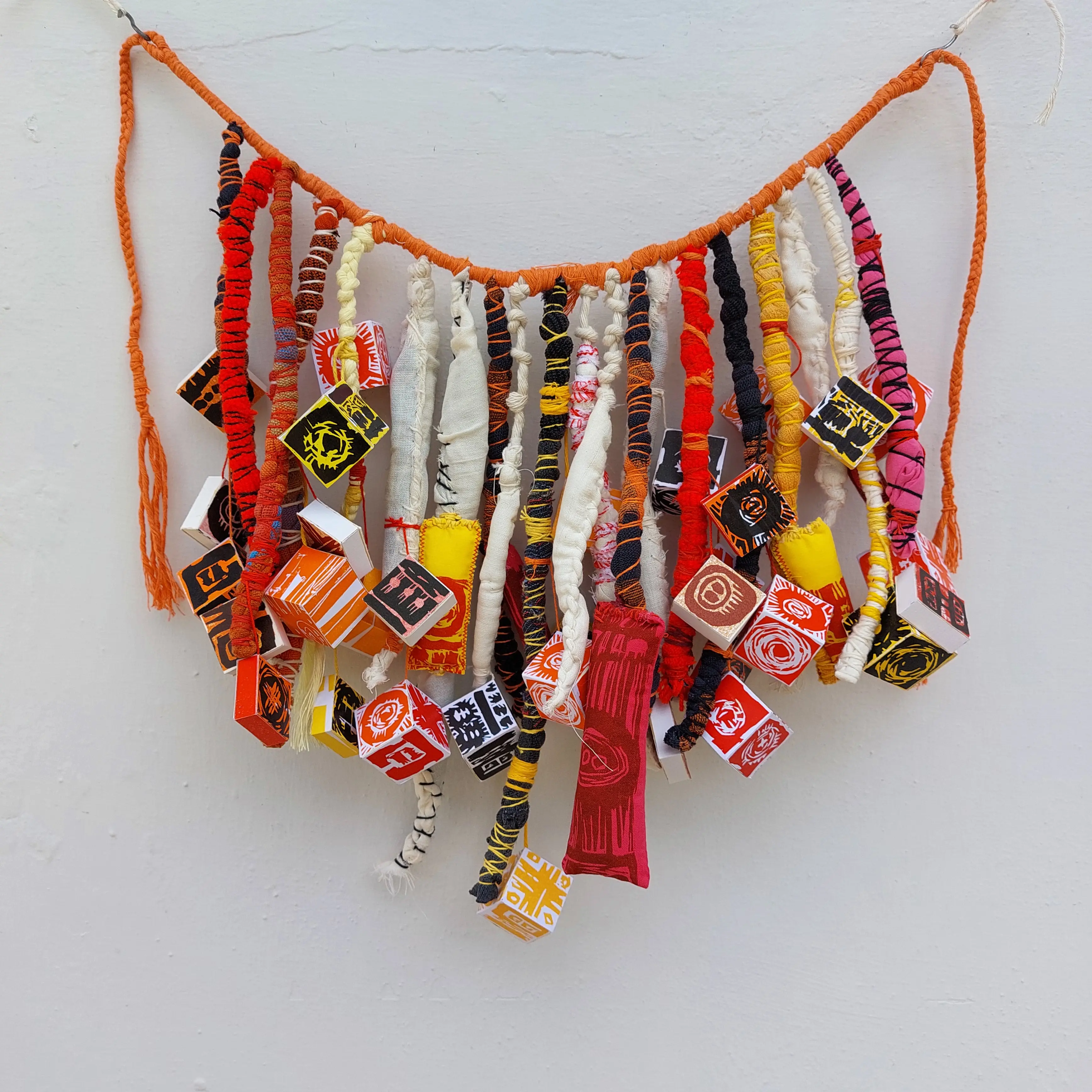 Xilografías de edición estallada incluidas en objeto textil.